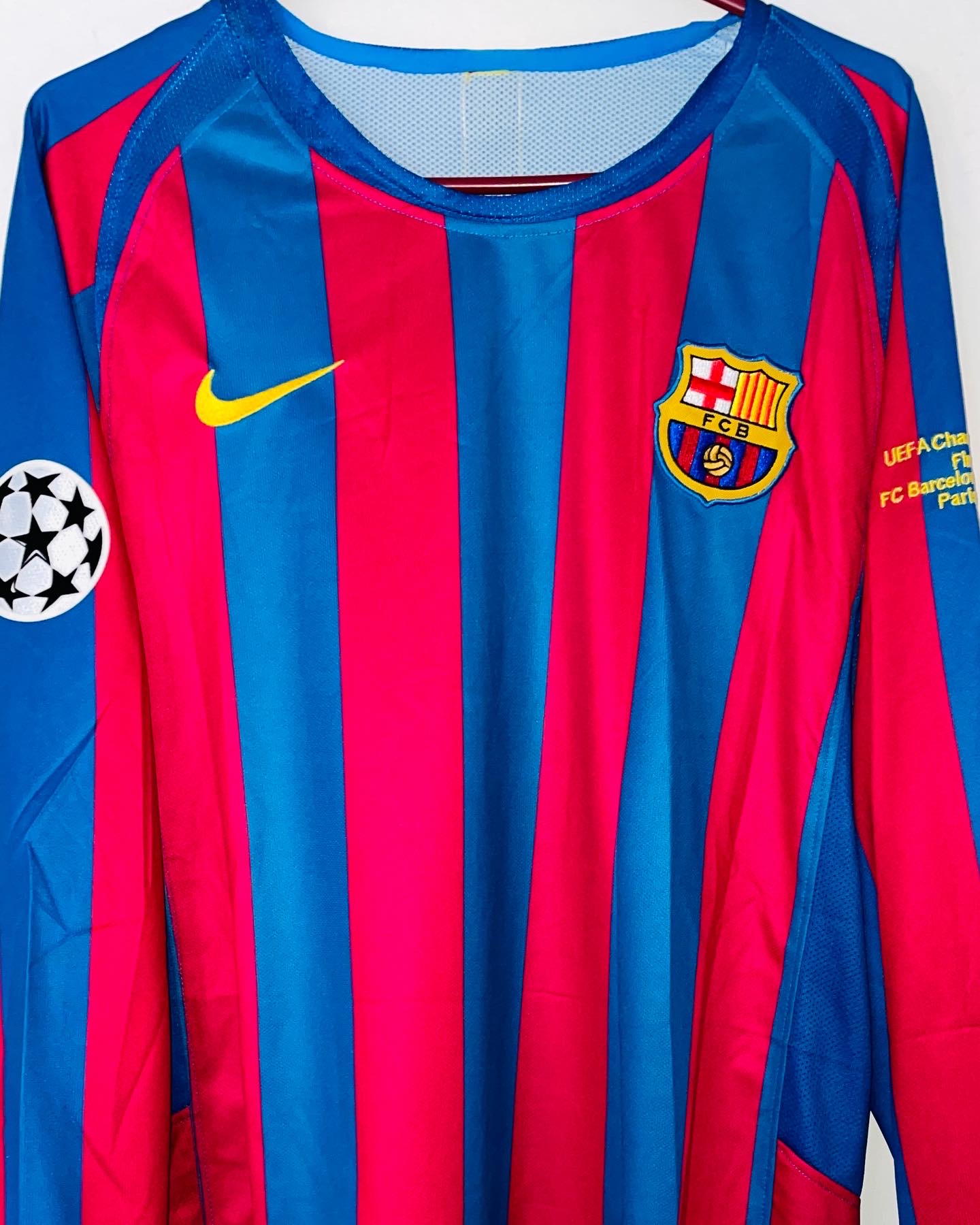 ⚡⚡ENVÍO RÁPIDO – Camiseta FC Barcelona Retro Final 2006 Ronaldinho Manga Larga